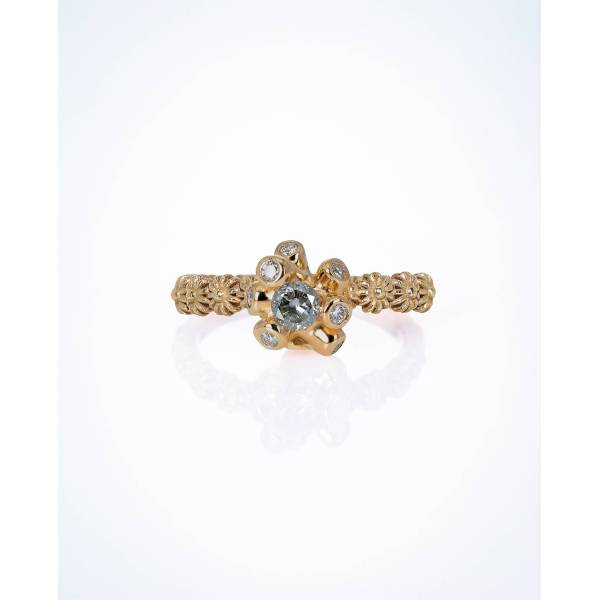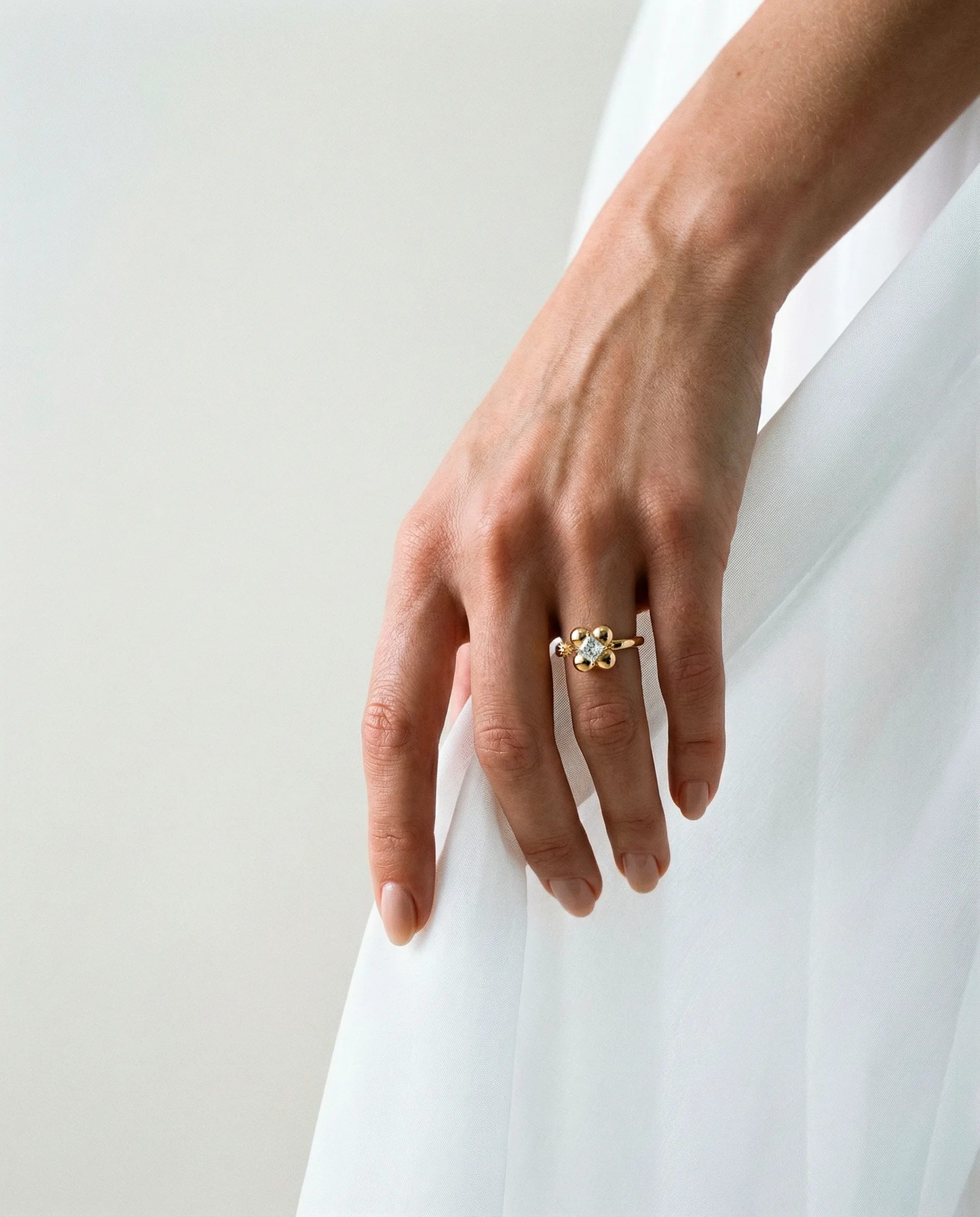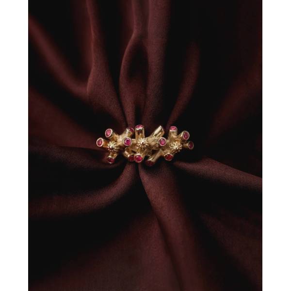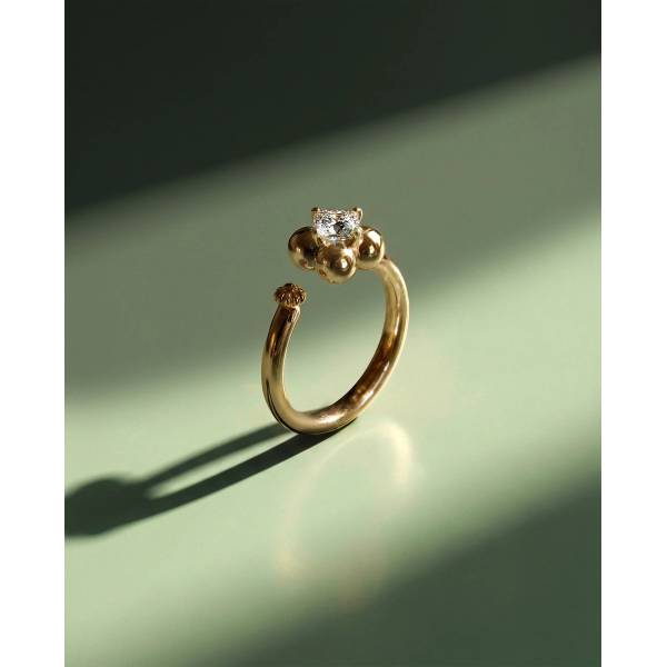 Una forma contenida y poderosa. La perla negra emerge como un núcleo denso y silencioso, sostenida por una arquitectura de oro que la envuelve y la eleva, como una isla atlántica, abrupta y salvaje, que irrumpe en el mar. Una pieza de contraste: peso y delicadeza, sombra y luz. Materiales Oro...