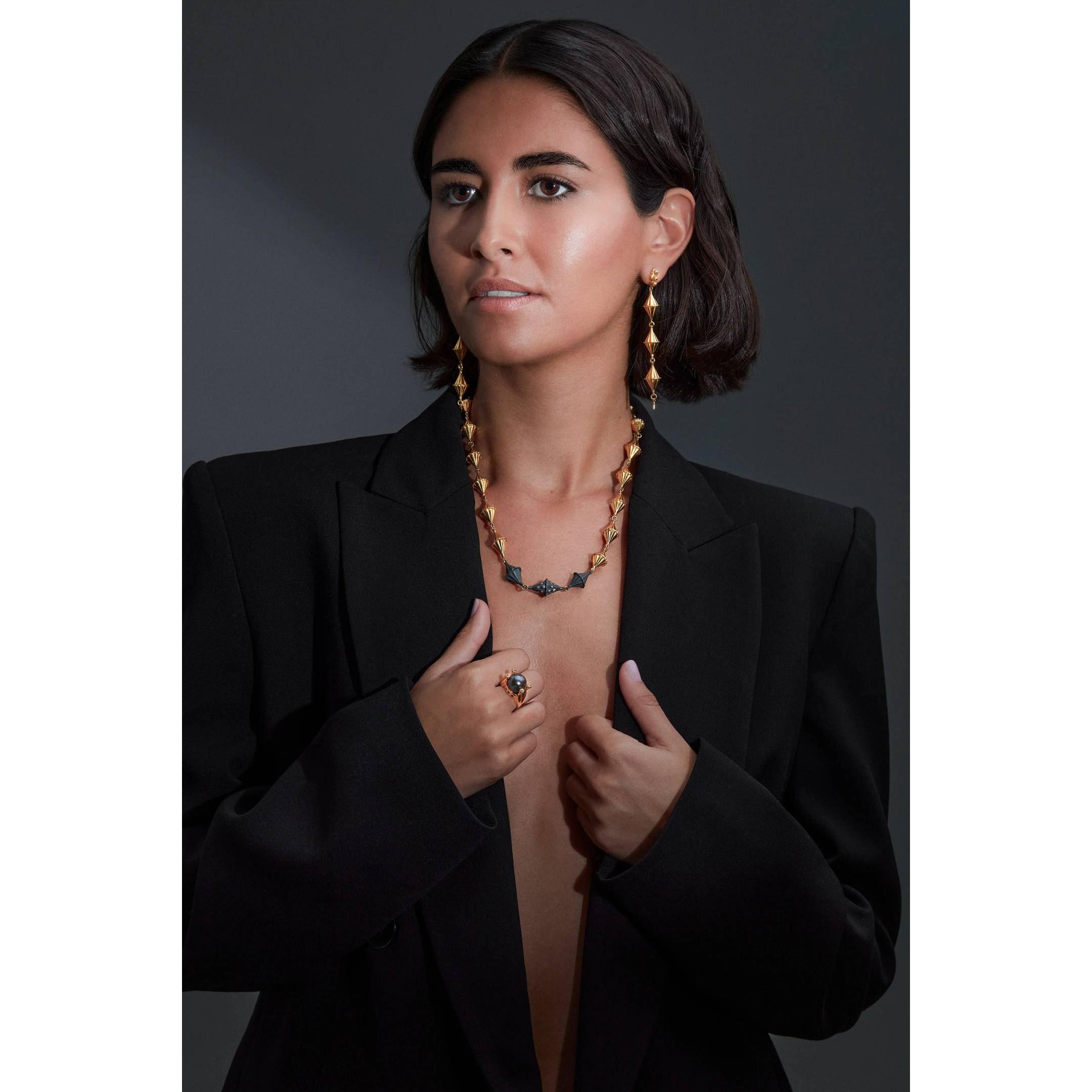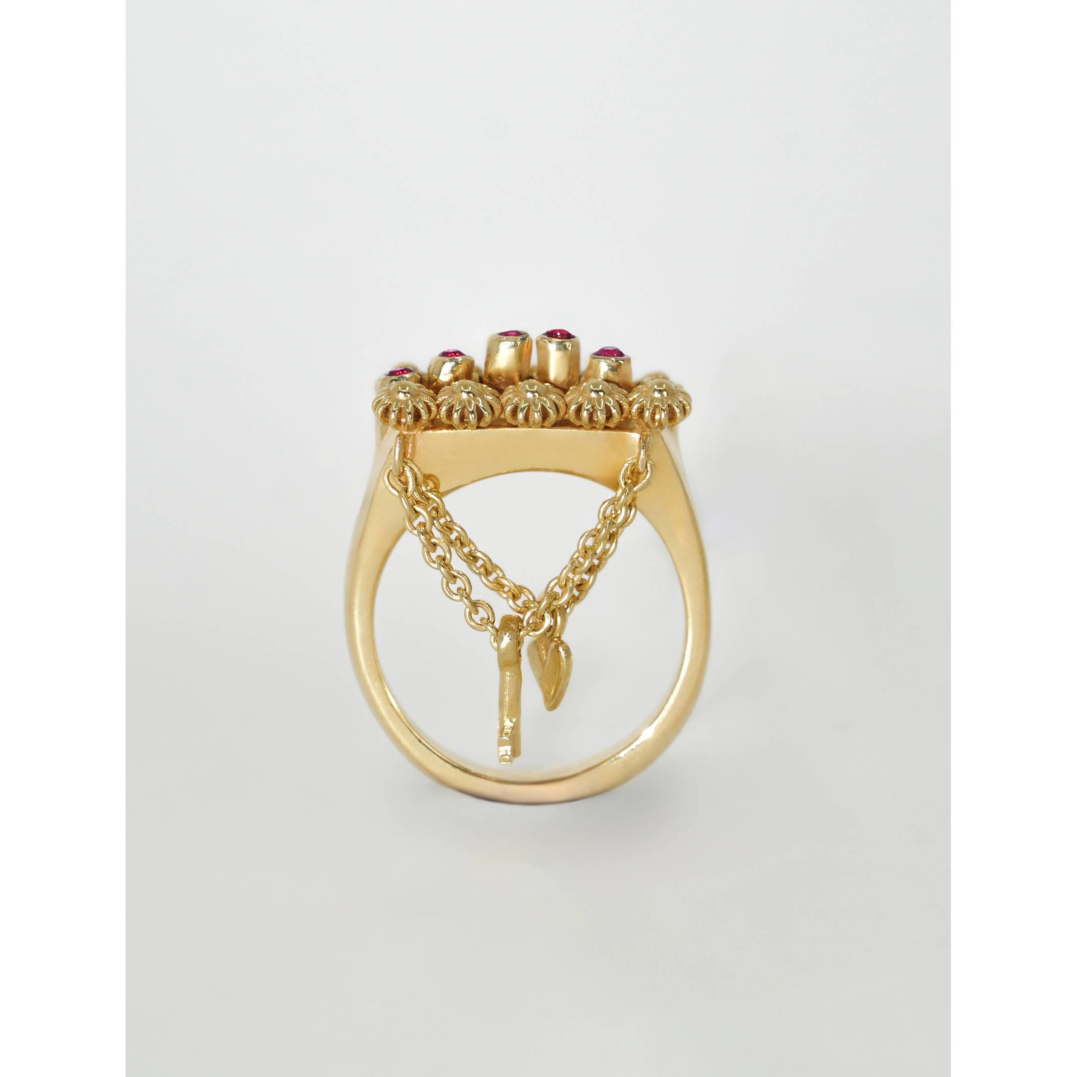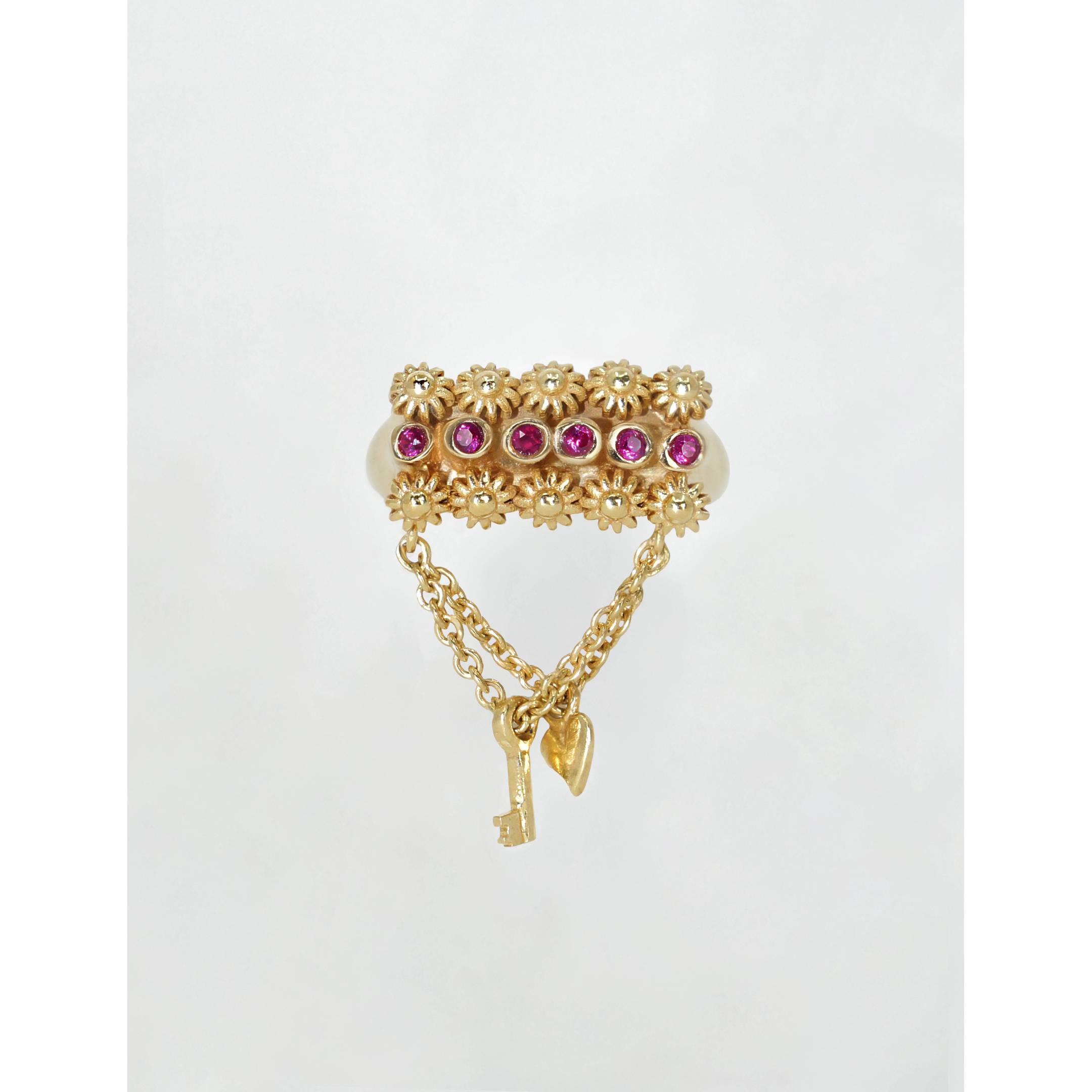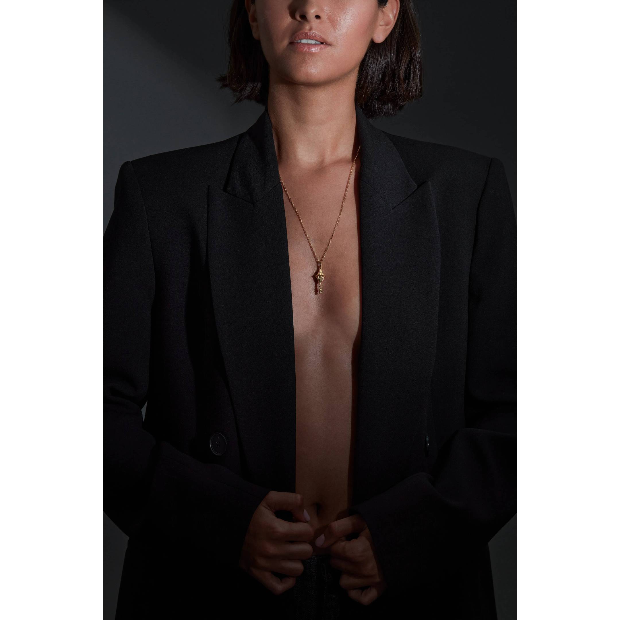 Inspirado en las cuentas de rombos o “gra d’ordi” del collaret de la emprendada ibicenca, el colgante Arrels mezcla también elementos como la llave y el corazón, típicos de los anillos de borronat ibicencos. Materiales Oro amarillo de 18k, amatistas y diamantes naturales de 0.015 ct de talla...