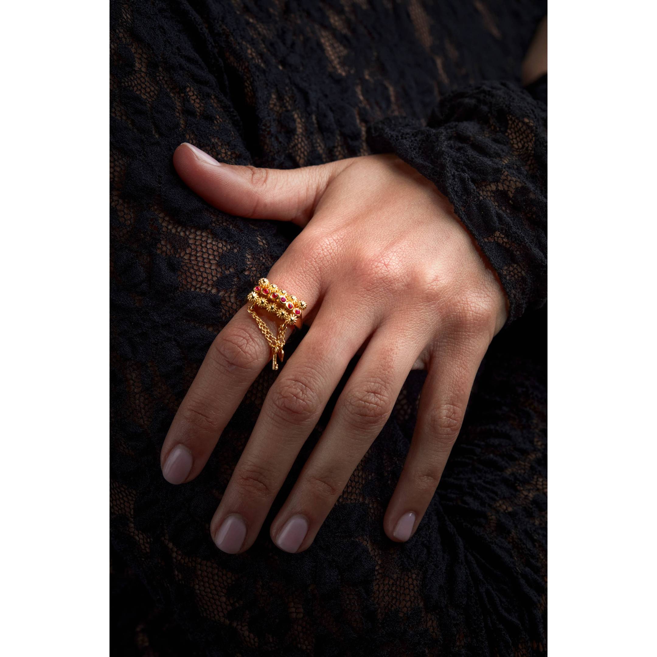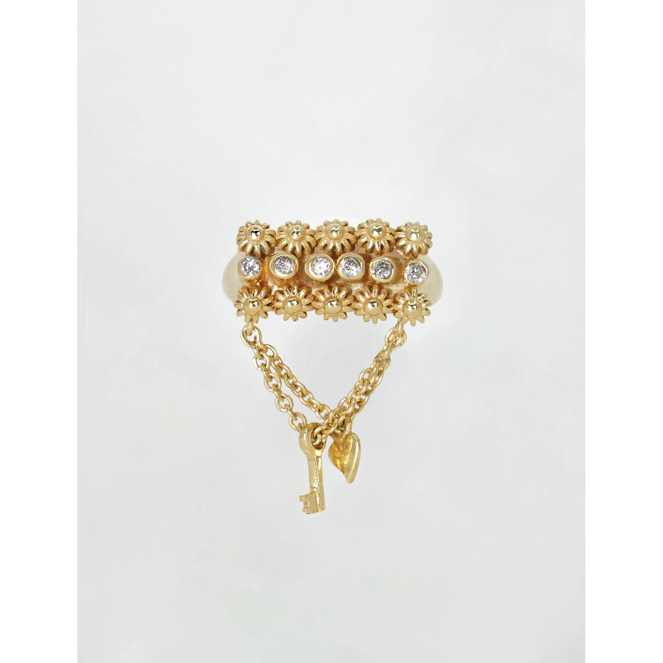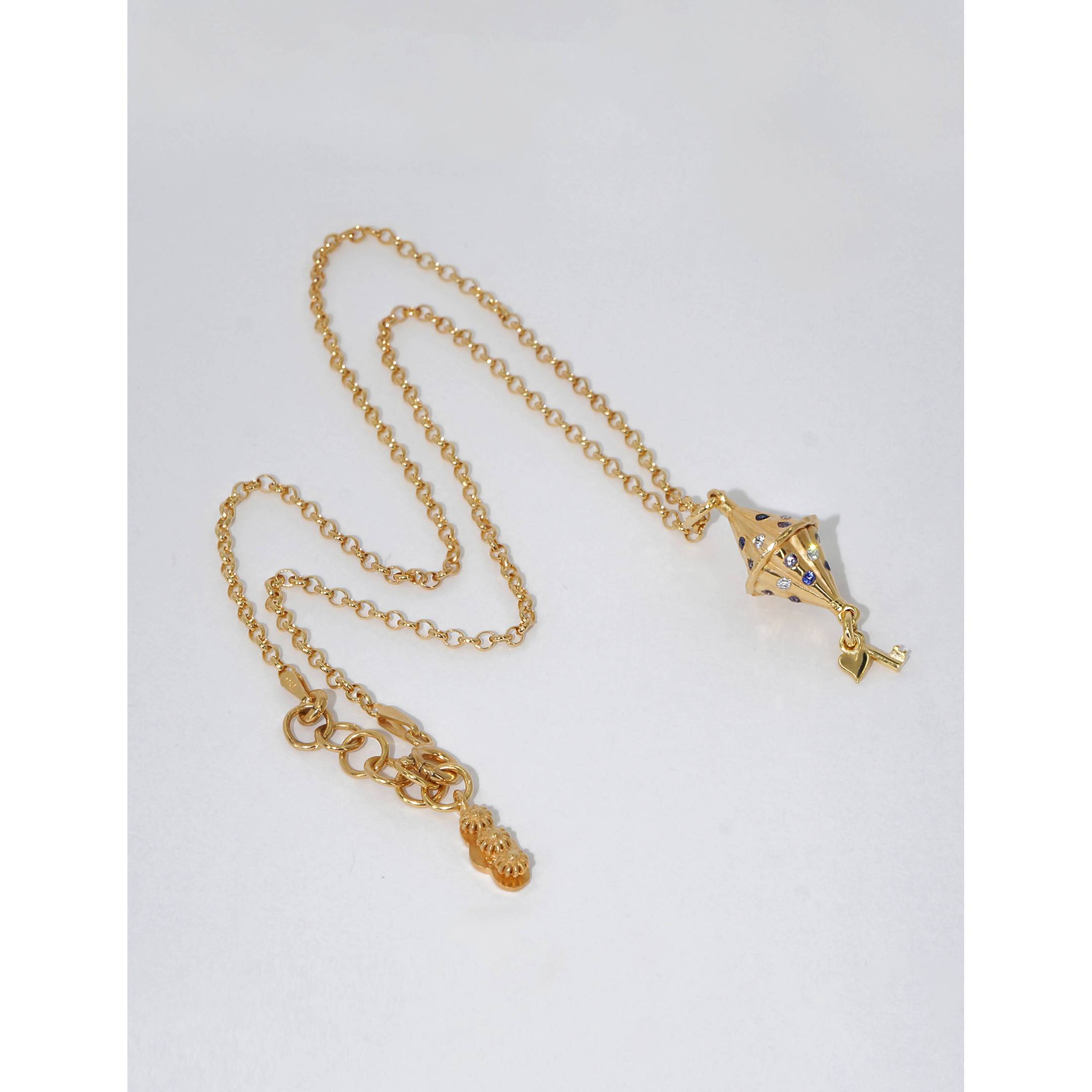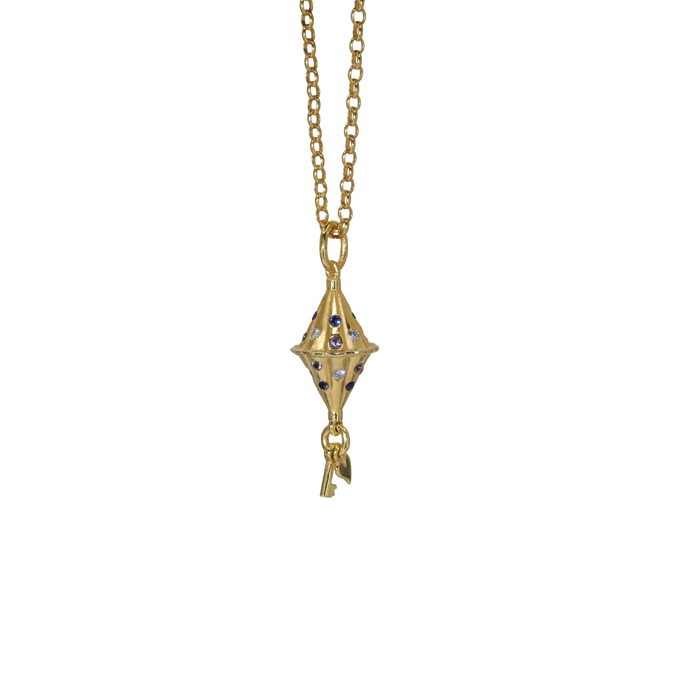 Inspirado en las cuentas de rombos o “gra d’ordi” del collaret de la emprendada ibicenca, el colgante Arrels mezcla también elementos como la llave y el corazón, típicos de los anillos de borronat ibicencos. Materiales Oro amarillo de 18k, amatistas y diamantes naturales de 0.015 ct de talla...