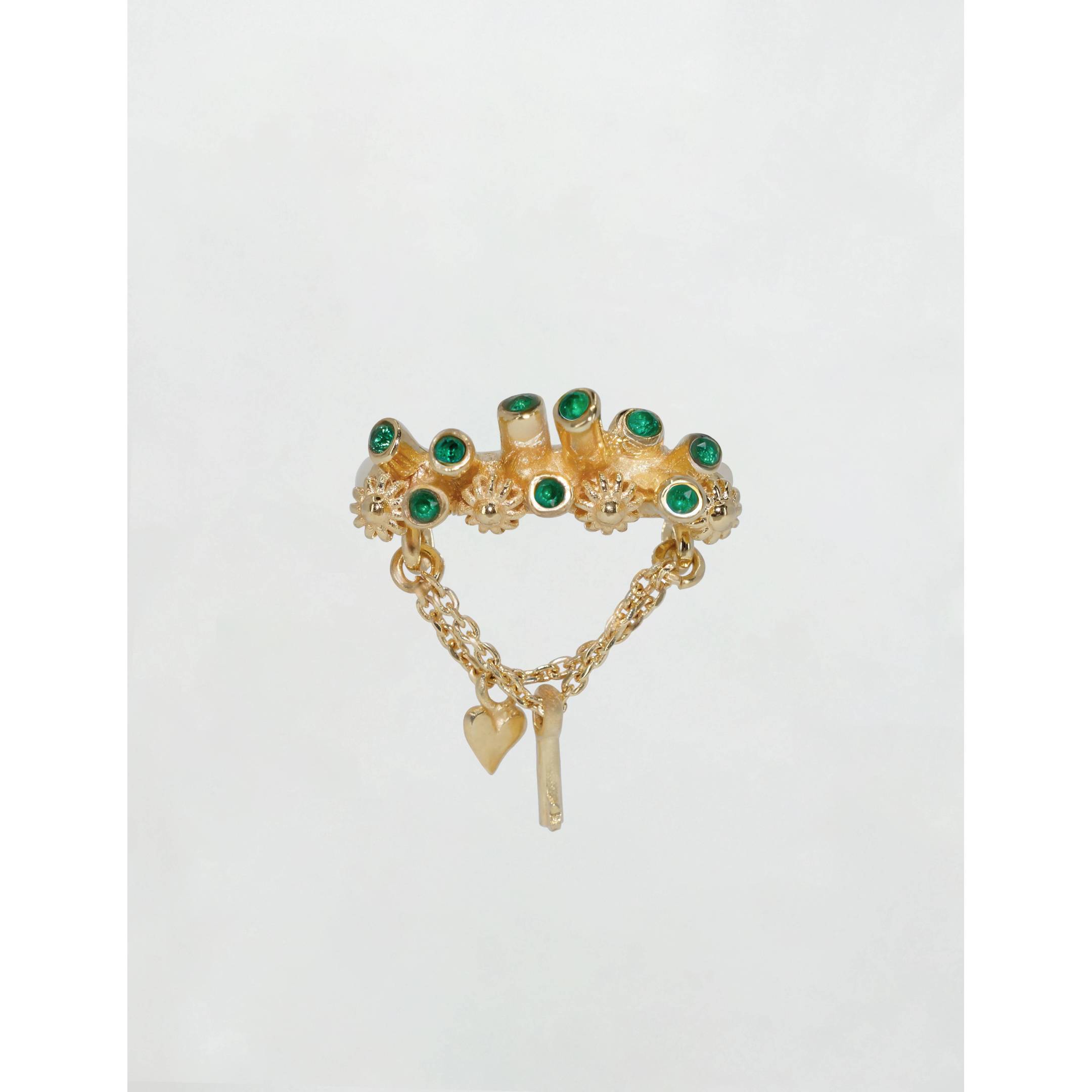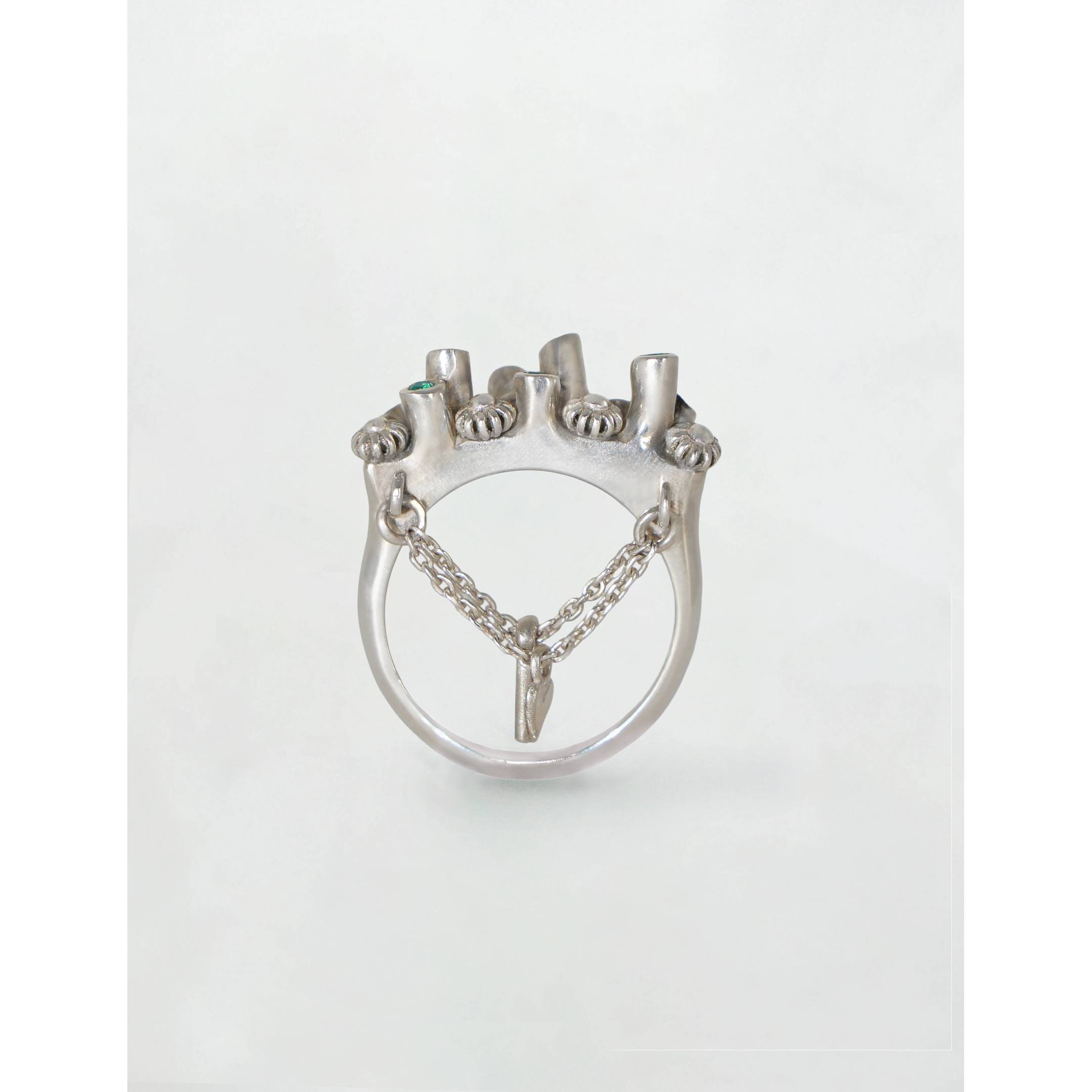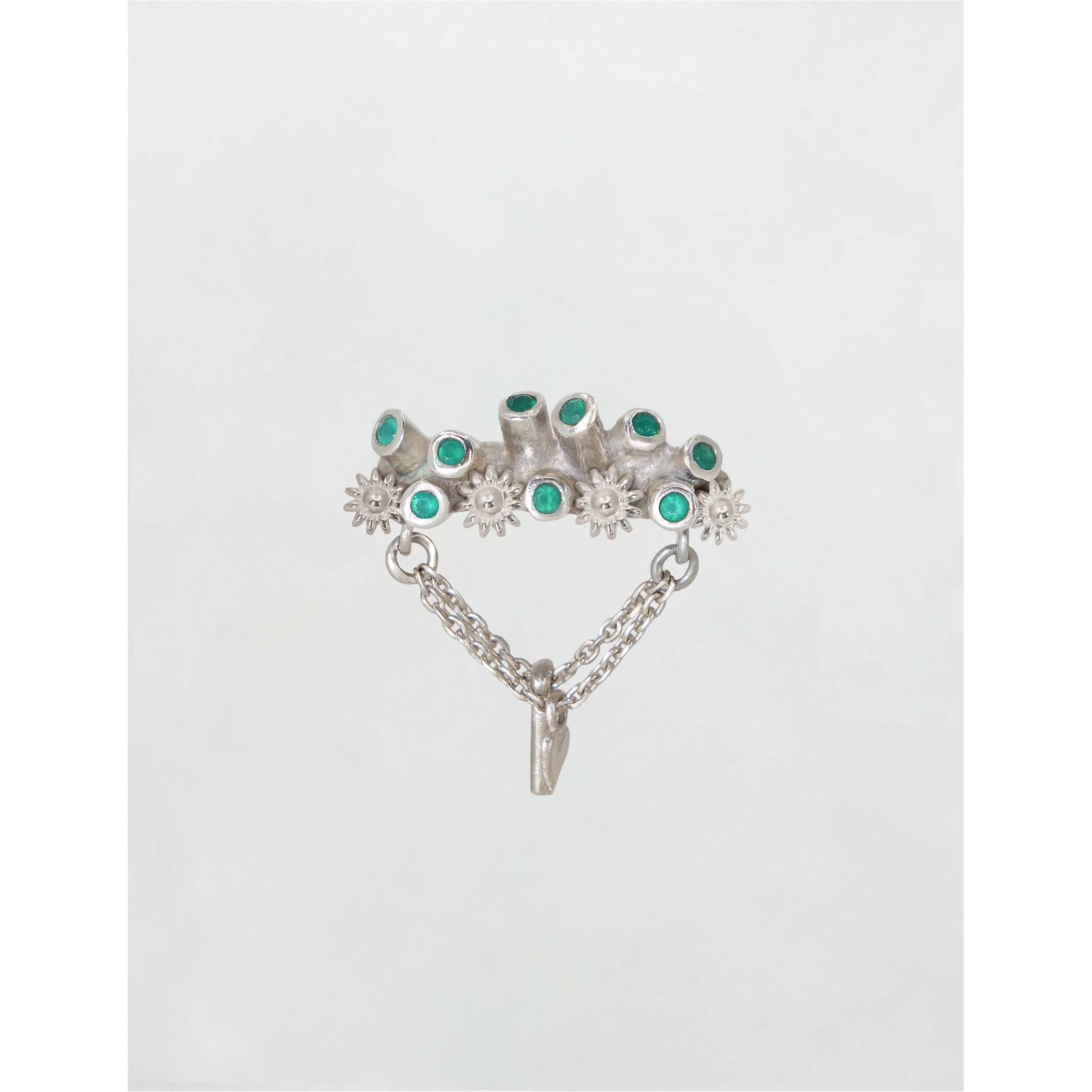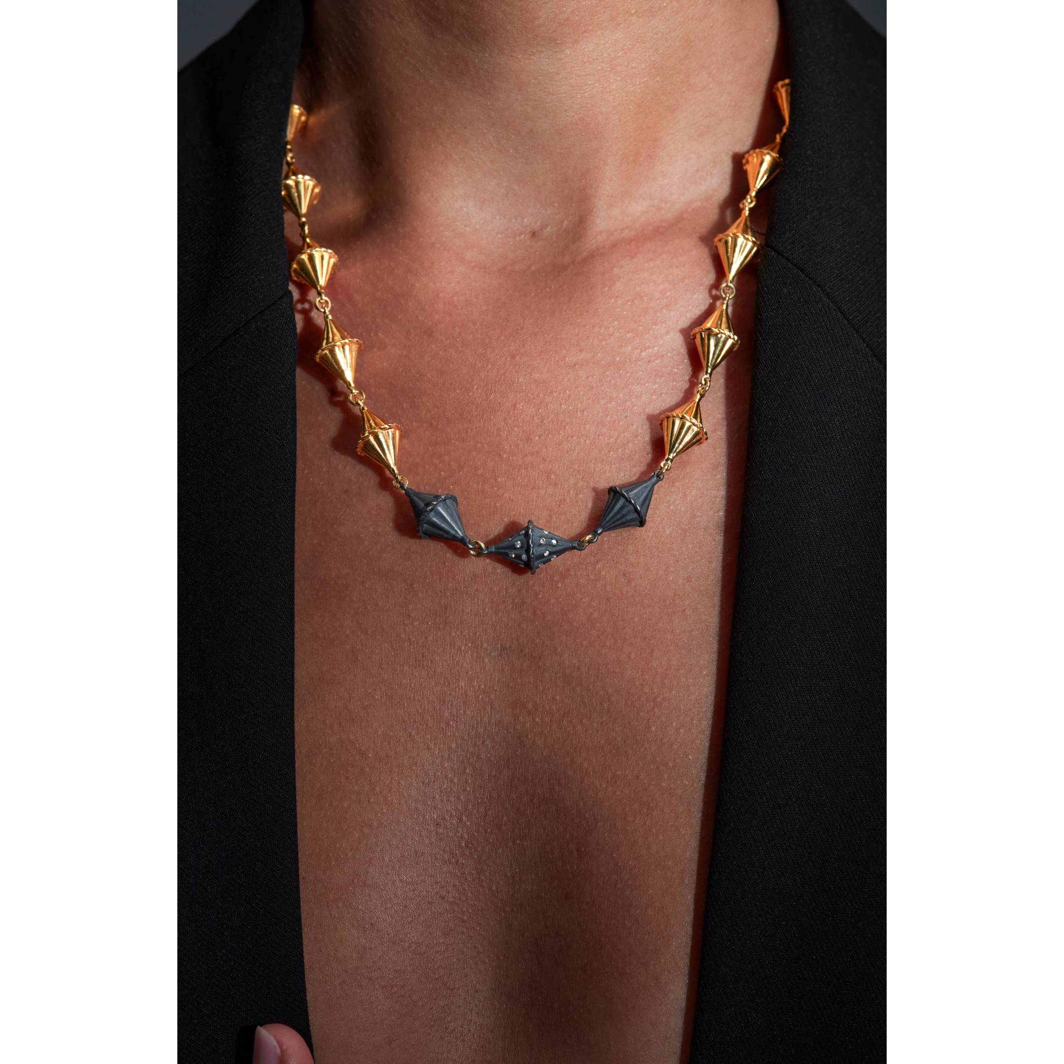 Inspirado en las cuentas de rombos o “gra d’ordi” del collaret de la emprendada ibicenca, el colgante Arrels mezcla también elementos como la llave y el corazón, típicos de los anillos de borronat ibicencos. Materiales Oro amarillo de 18k, amatistas y diamantes naturales de 0.015 ct de talla...