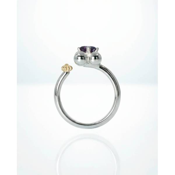 Una flor que no se marchita. Un diamante detiene ese instante de vida —efímero por naturaleza— y lo transforma en eternidad: una declaración de amor que perdura. Materiales Anillo macizo de plata 925 y detalle en oro amarillo de 18k con:Amatista natural de talla princesa de 0.3 ct.Aguamarina...