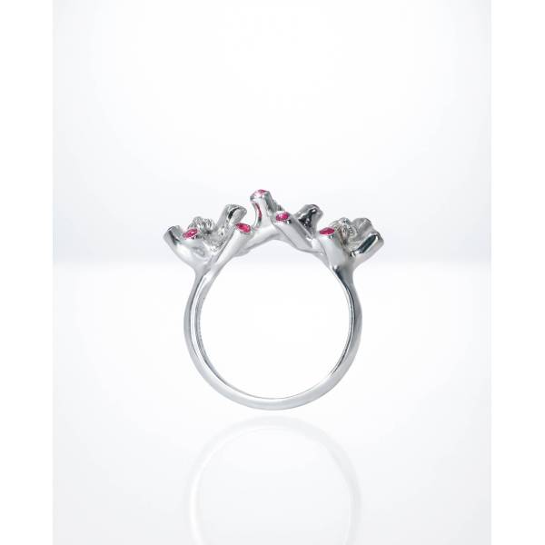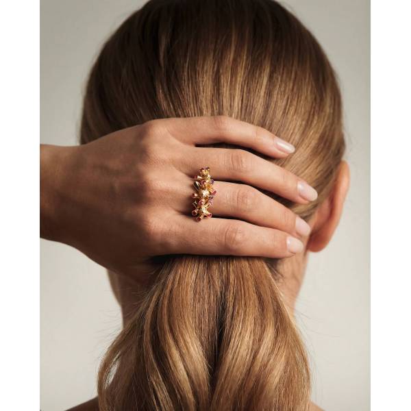 Inspirado en la planta de la buganvilla, que trepa sobre los muros blancos de la isla de Ibiza, este anillo captura la fuerza espontánea de lo vivo. Volúmenes orgánicos que se entrelazan como ramas en flor, salpicadas de color. Un gesto libre, luminoso y profundamente mediterráneo. Materiales...