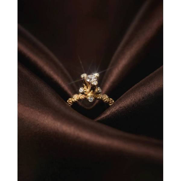 Inspirado en las formaciones escultóricas de la playa de Aguas Santas de Ribadeo, también conocida como playa de As Catedrais, este anillo evoca la arquitectura natural que el mar revela y oculta con el paso de las mareas. Volúmenes orgánicos que se elevan como arcos de piedra, atravesados por la...