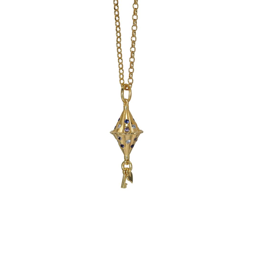 Inspirado en las cuentas de rombos o “gra d’ordi” del collaret de la emprendada ibicenca, el colgante Arrels mezcla también elementos como la llave y el corazón, típicos de los anillos de borronat ibicencos.