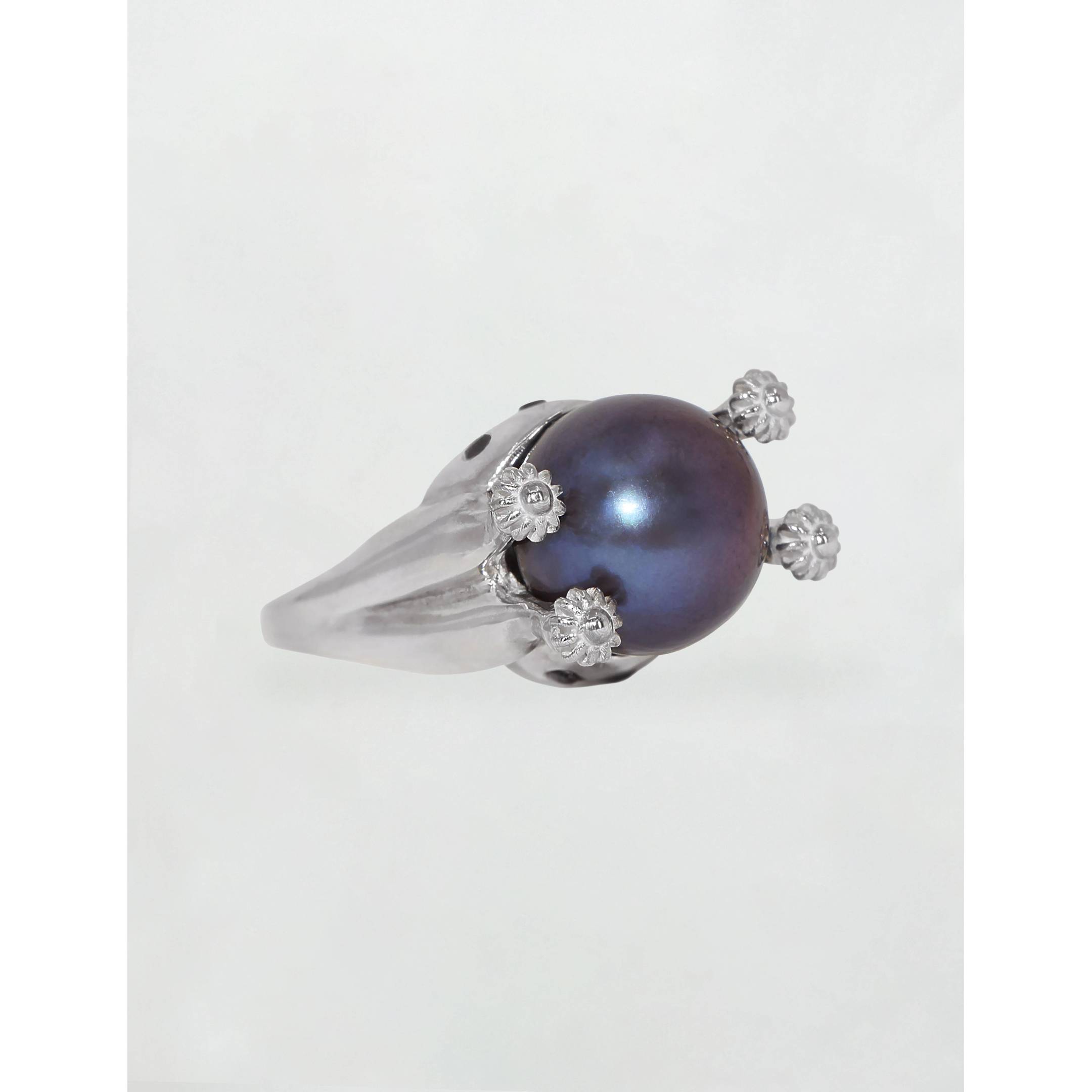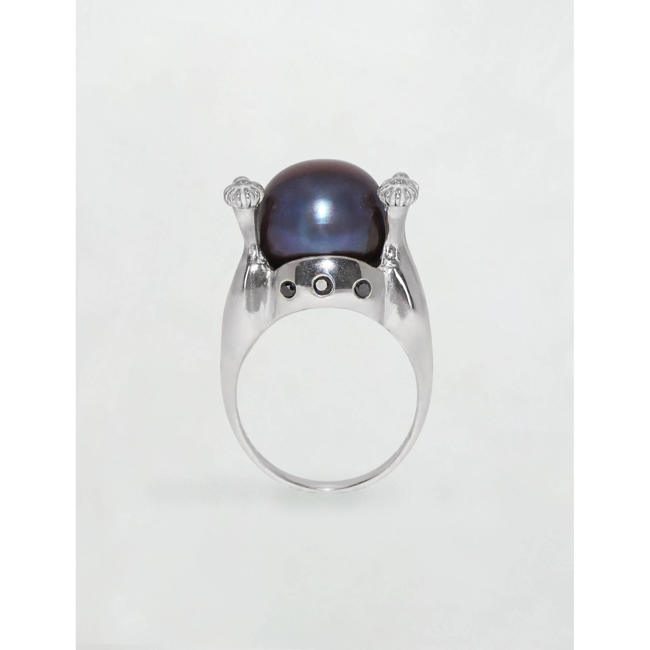 La robusta belleza de las Islas Cíes, uno de los caprichos más hermosos de las costas gallegas, inspira este anillo. Materiales Oro blanco o plata 925, perla negra y diamantes negros naturales de talla brillante.