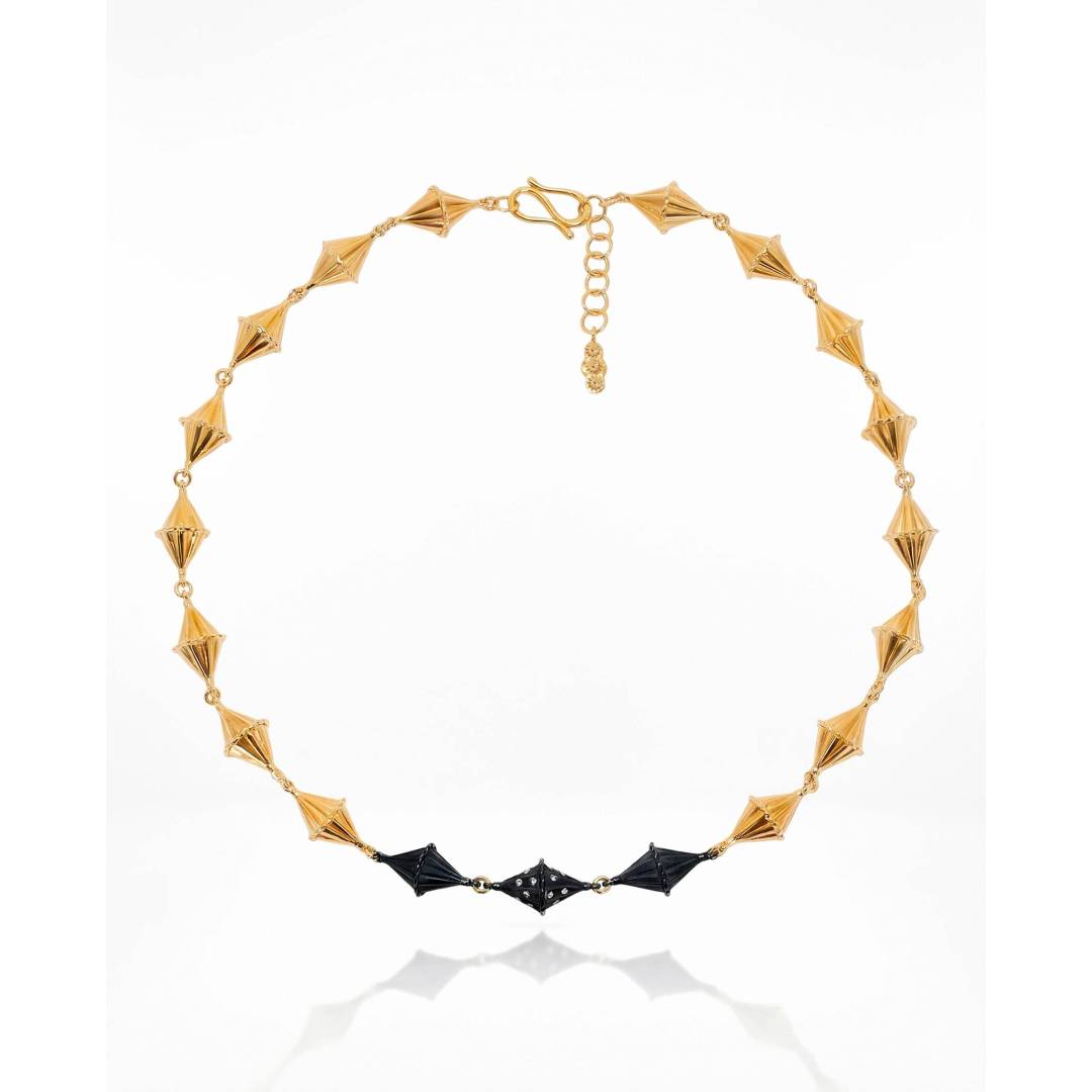 Una forma contenida y poderosa. La perla negra emerge como un núcleo denso y silencioso, sostenida por una arquitectura de oro que la envuelve y la eleva.Una pieza de contraste: peso y delicadeza, sombra y luz. Materiales Oro blanco, perla negra natural y diamantes negros naturales de talla...