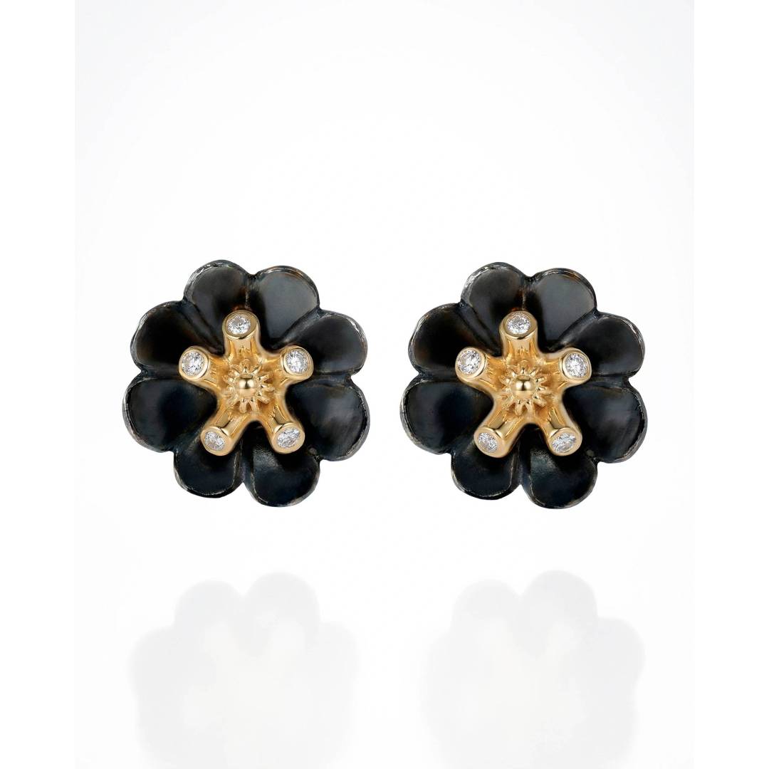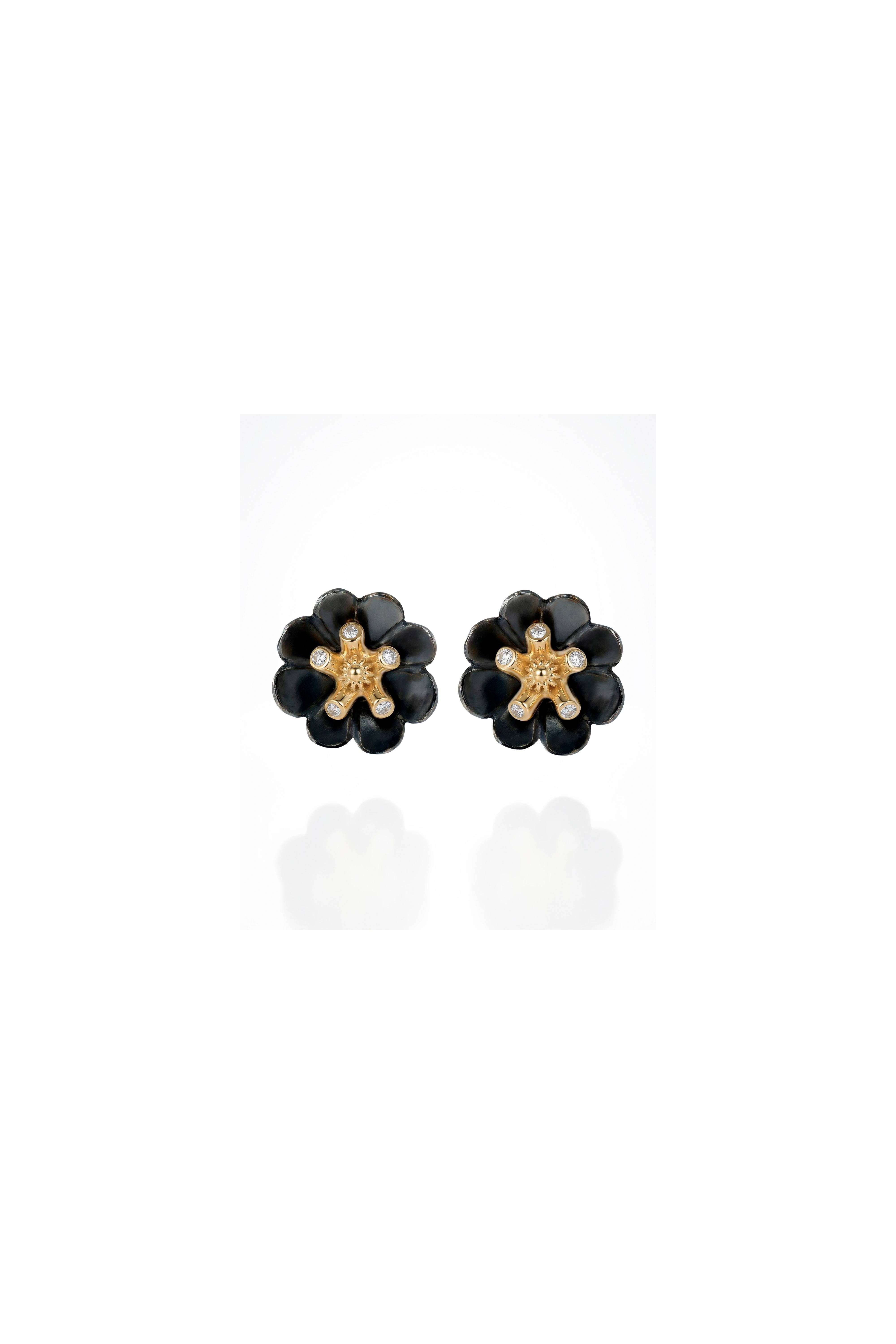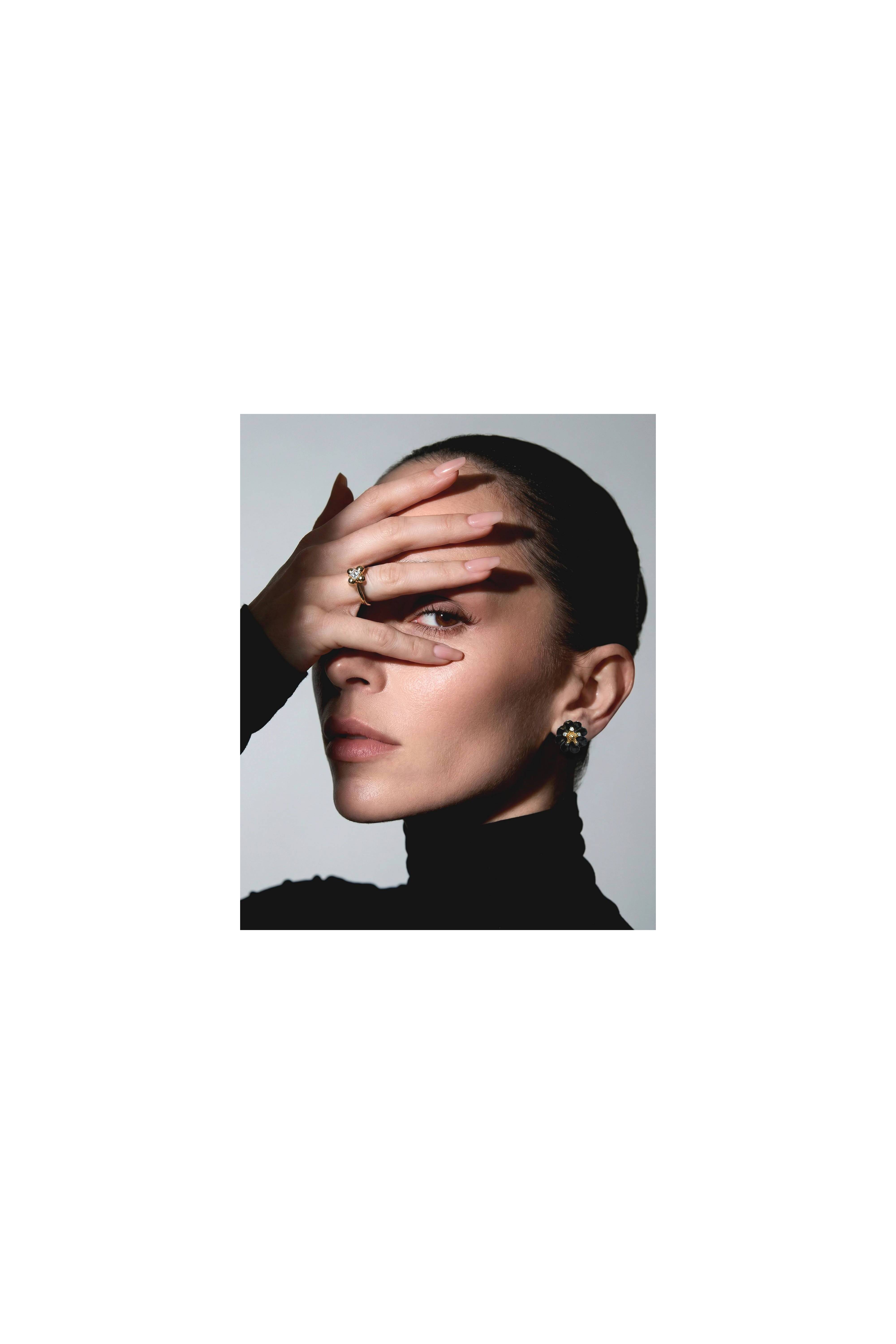 Una flor en equilibrio. Cinco puntos donde la luz se posa en torno a su centro, trazando una forma precisa y silenciosa. Entre geometría y naturaleza.   Materiales Oro amarillo de 18k y diamantes naturales de 0.015 ct de talla brillante.Diamantes seleccionados con un mínimo de color de G+ y una...